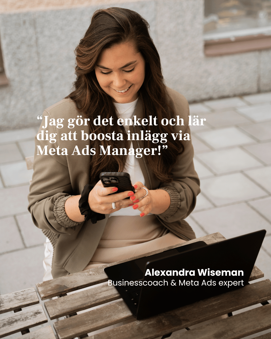 Äntligen känns det inte läskigt att gå in i Ads Manager utan istället spännande. Tack vare Alexandras pedagogiska guider har jag gått från att ha noll koll på vad allt betyder till att faktiskt förstå verktyget och veta hur jag ska göra. Fantastiskt!”